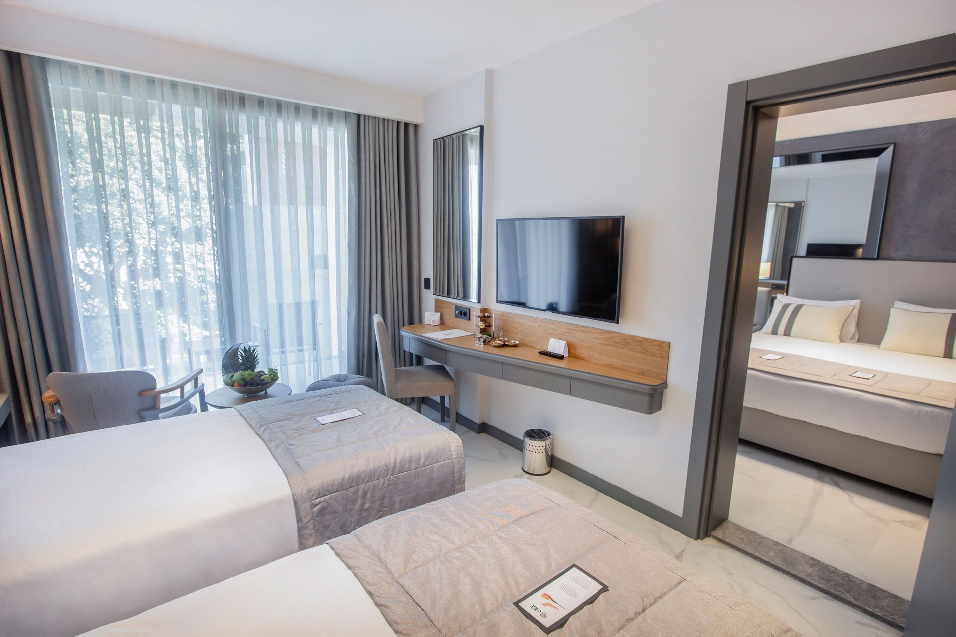 40 m²'lik kullanım alanına sahip olan Connection Eco odalarımız manzarasız ve içten ara kapıyla bağlantılı 2 ayrı odadan oluşmaktadır. Bina aralarında ve ağırlıklı olarak zemin katlarda bulunmaktadır.