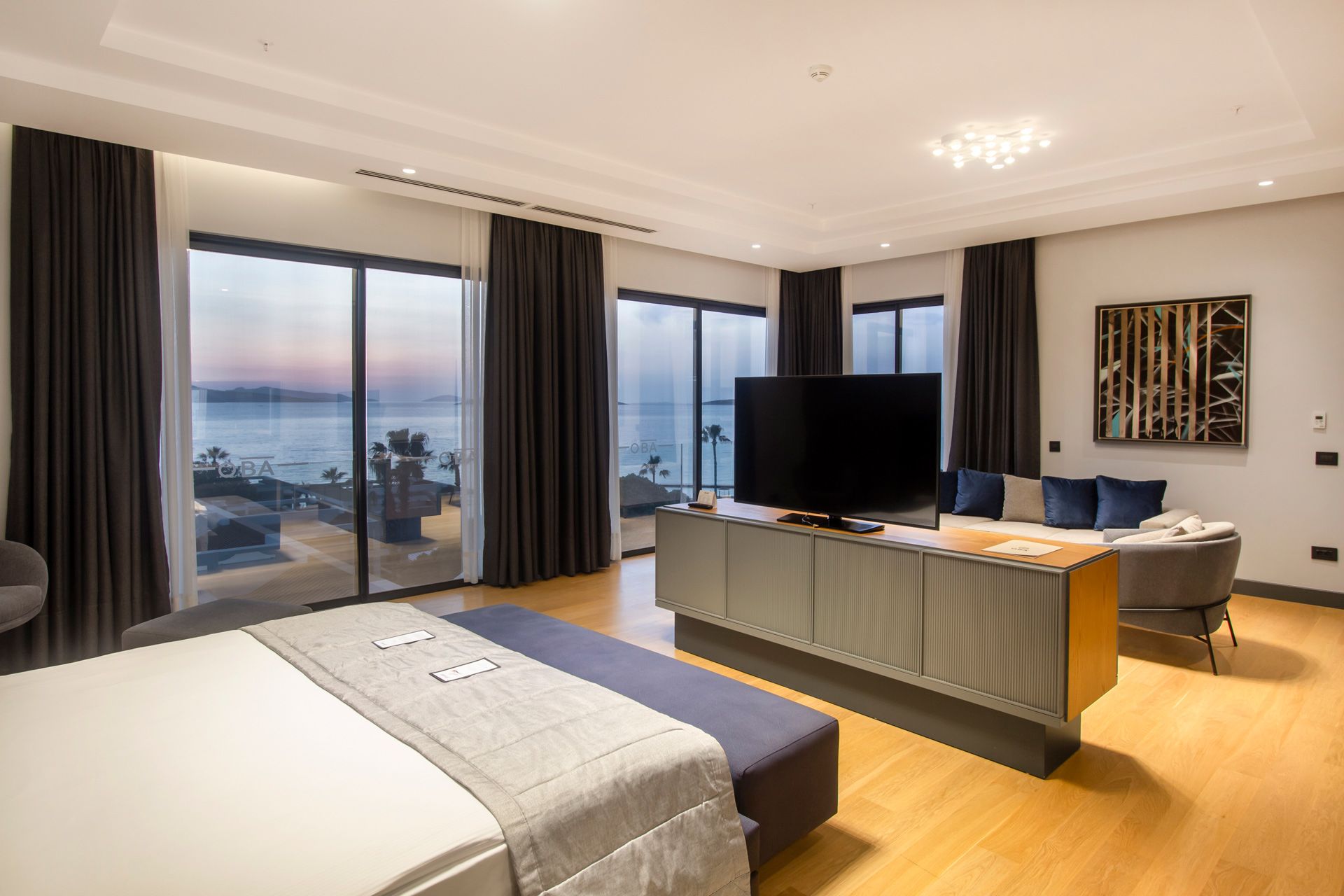 Özel bir mimariye sahip King Suite, Ege Sahili'nin ve Ege ormanlarının eşsiz manzaralarını muhteşem bir açıyla sunmaktadır.