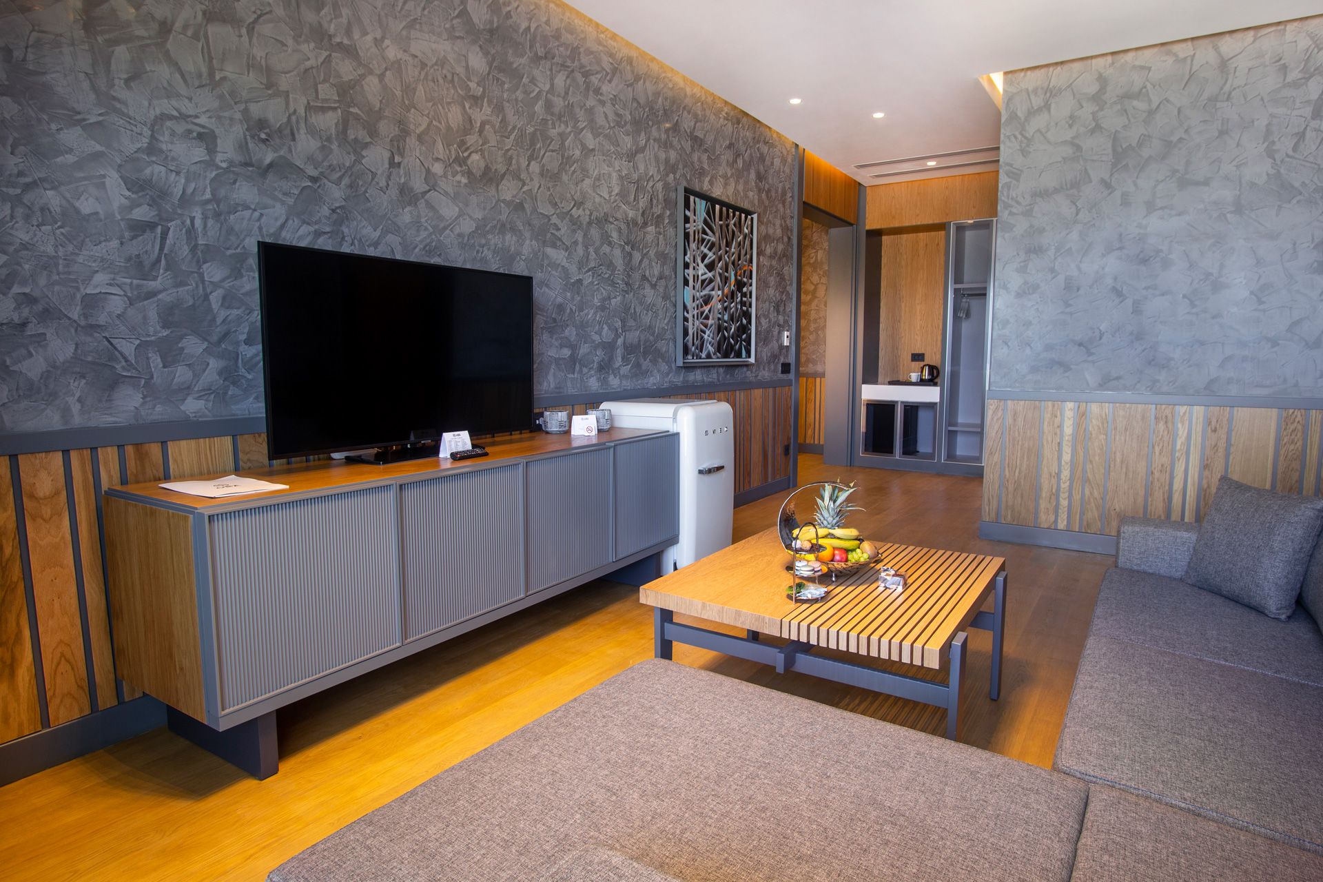 115 m² den oluşan Senior Suite odamız deniz manzaralıdır. 1 çift kişilik yataklı oda, 1 oturma odasından oluşmaktadır. Ara kapılı oturma odasında sofa yatak bulunan bu odalarda Çift banyo ve balkon bulunmaktadır. Giyinme odalı ve duşa kabinlidir.